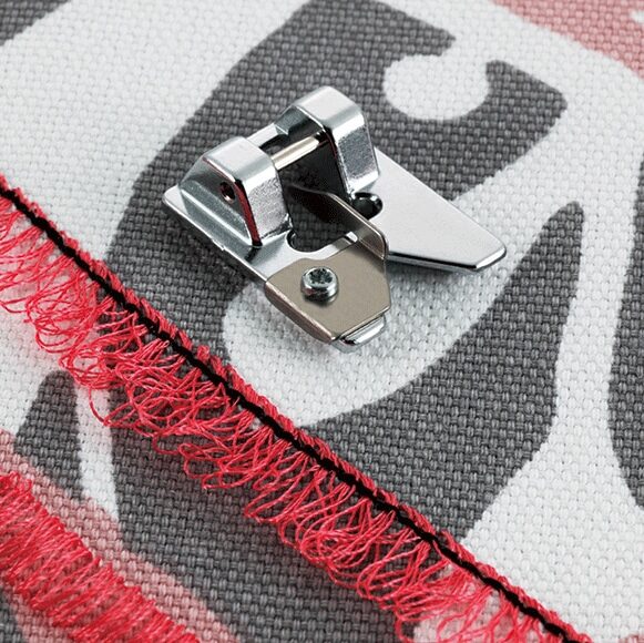 The Fringe foot is a good tool for creating 3D flowers, heirloom seam joins, surface texture and custom trims with a simple zig zag stitch.