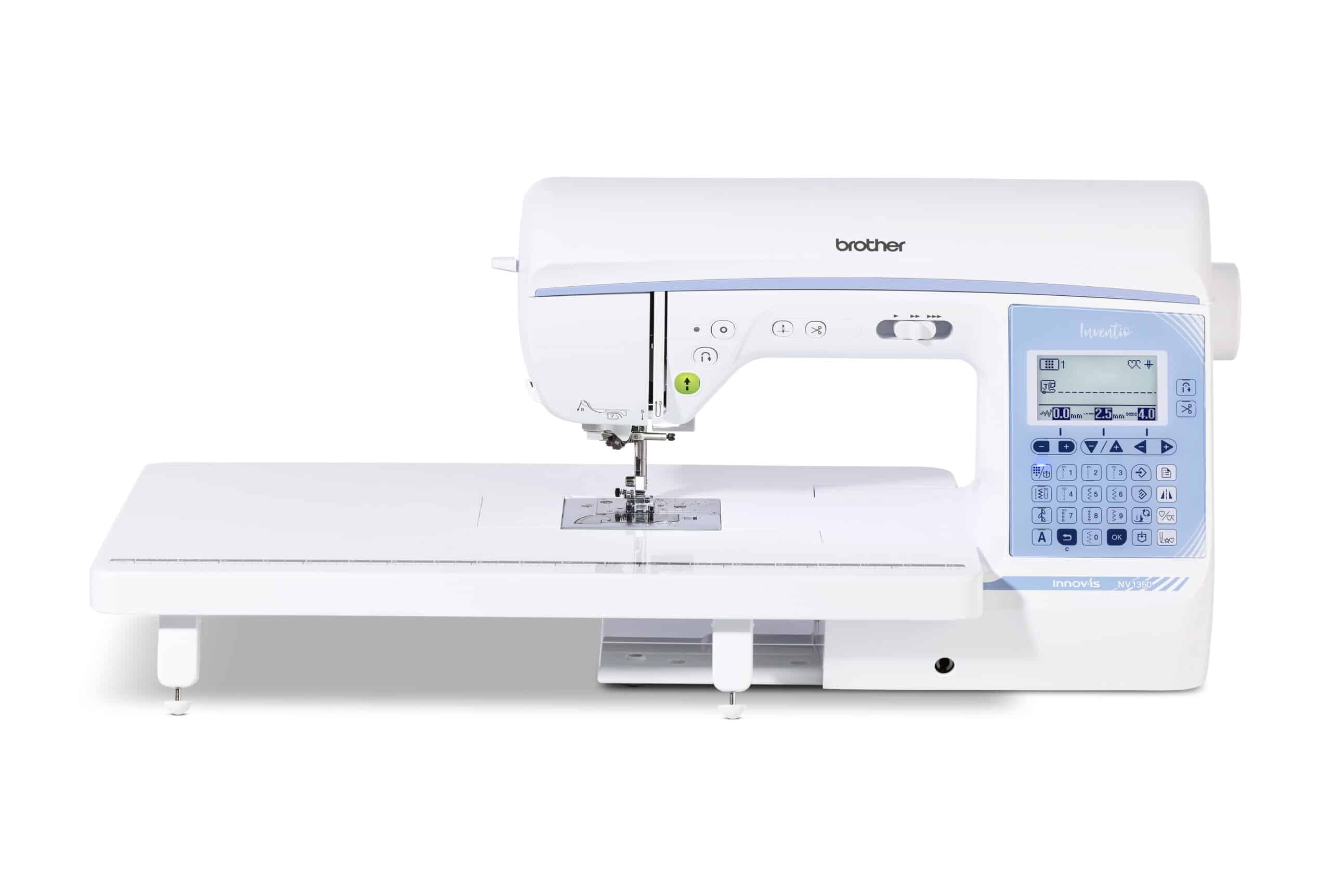 Sew with confidence with the NV1350 sewing machine at your side. With our Square Feed Drive System, knee lifter and slide speed control your stitch outs will be steady, strong and smooth.
