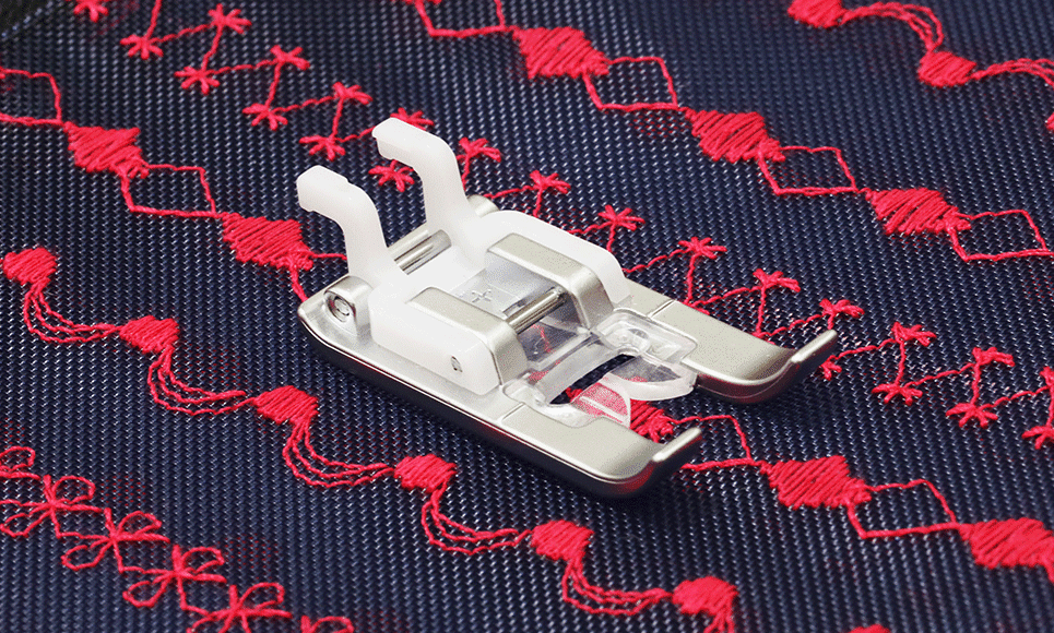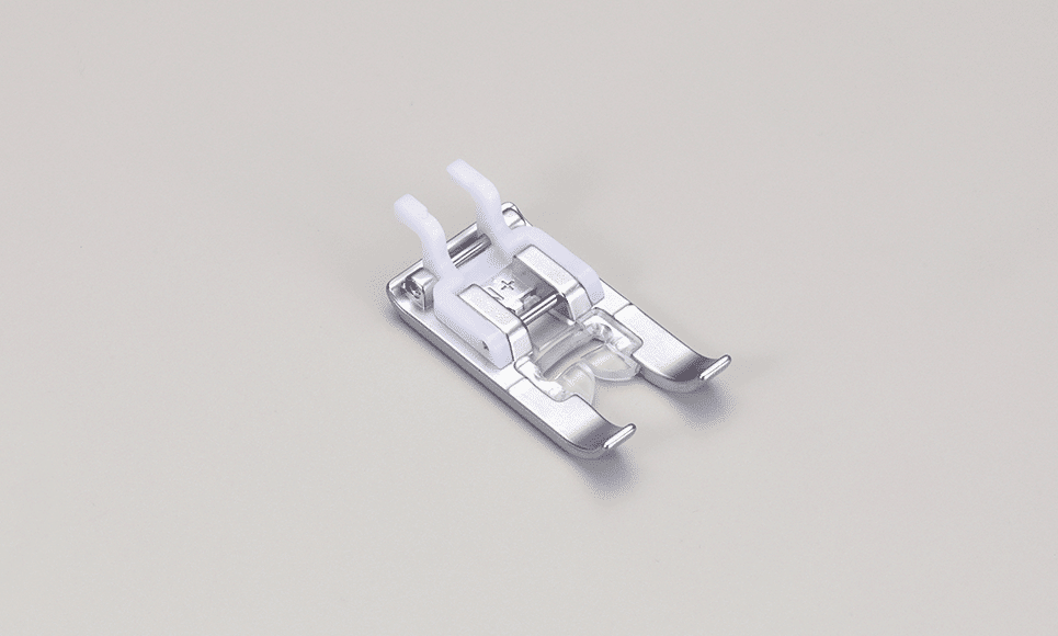 The new N+ foot has a durable coating for feeding fabric smoothly. The plastic guide helps to minimize the misalignment of the material. Perfect for sewing monogramming, decorative, satin and alphabet lettering stitches where more visibility is needed.