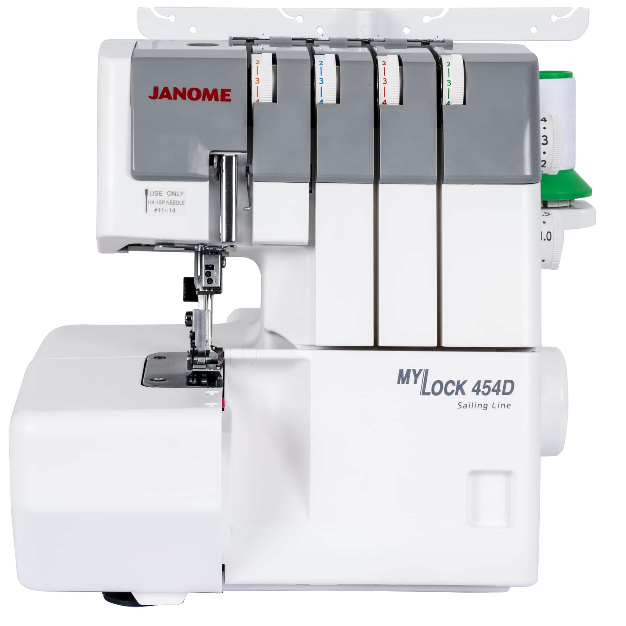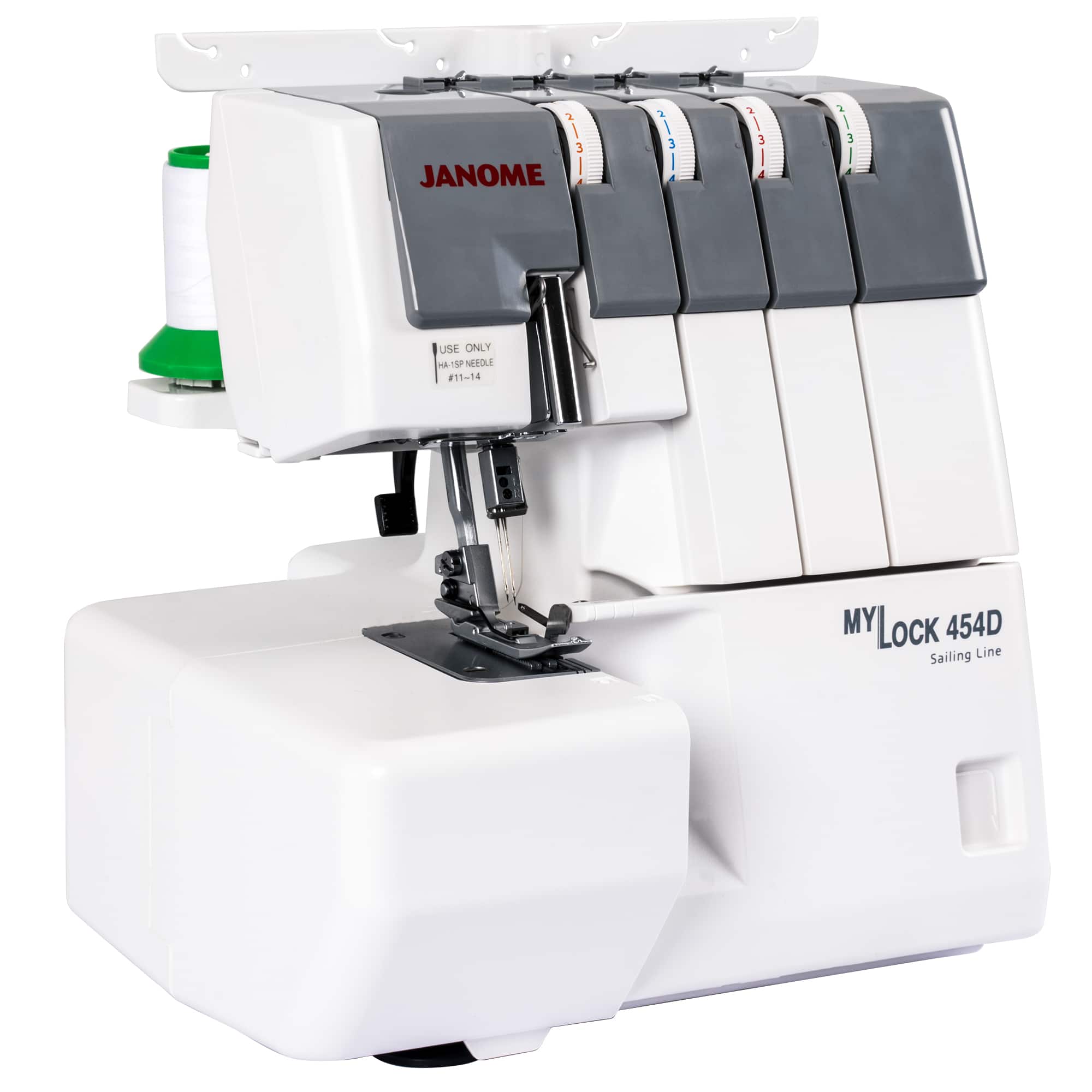 Professionally finish your garments and experiment with stretchy fabrics. This new 3/4 thread overlocker, model ml454d from janome has an improved fabric feed. An 8-piece feed dog enables fabrics to glide under the foot. Refinements like the gentle curve at the tip of the presser foot helps for a smooth start. The bi-level performance for stitching multiple layers is impressive and the presser foot also has added texture on the underside to assist in fabric feeding and fabric slippage.