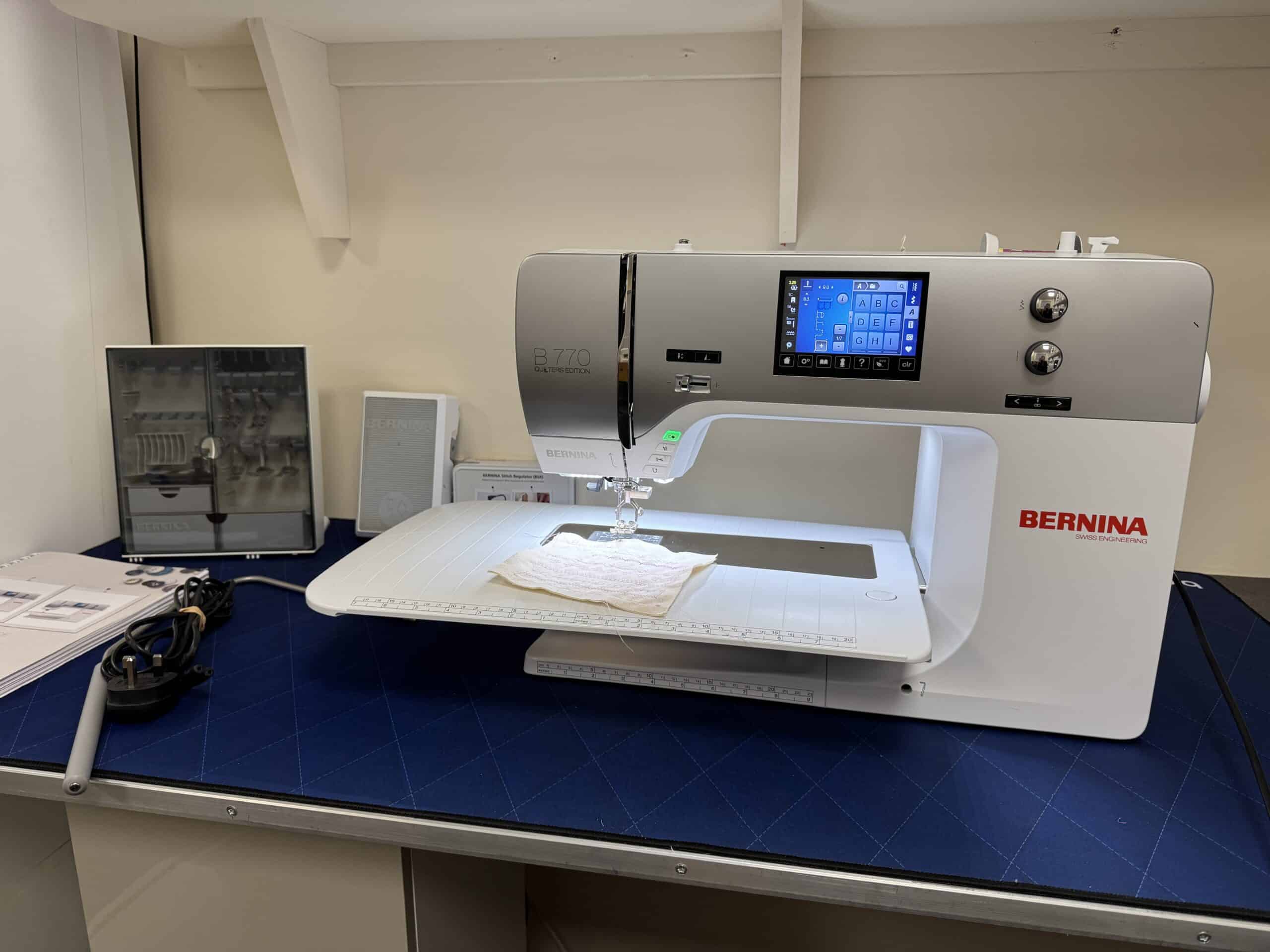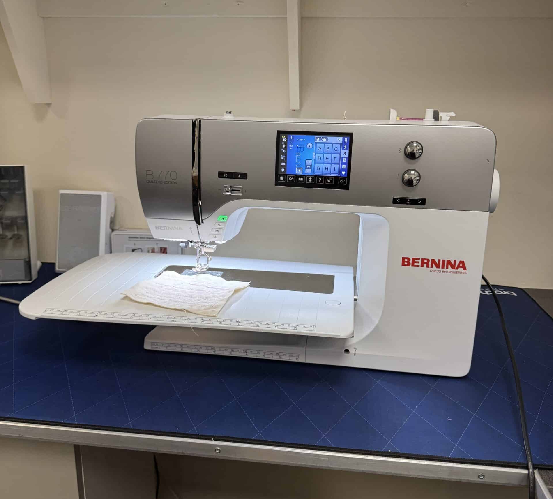 The B 770 QE offers a full 13-inch extended freearm including ten inches of space to the right of the needle. Enjoy a large sewing and embroidery area.