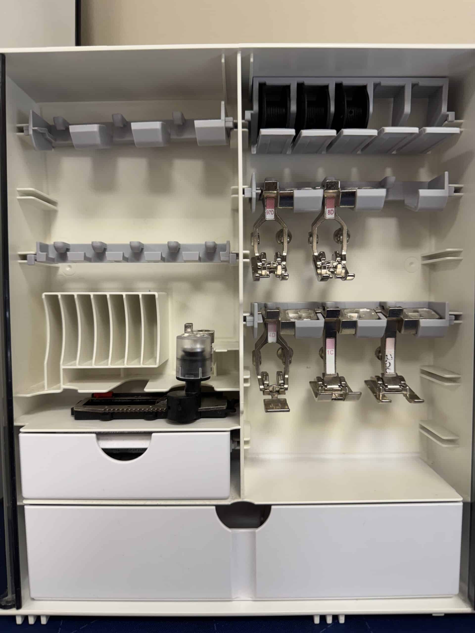 The BERNINA Hook sews high-precision stitches up to 9 mm in width with speeds up to 1,000 stitches per minute. The bobbin holds 70% more thread than standard bobbins.