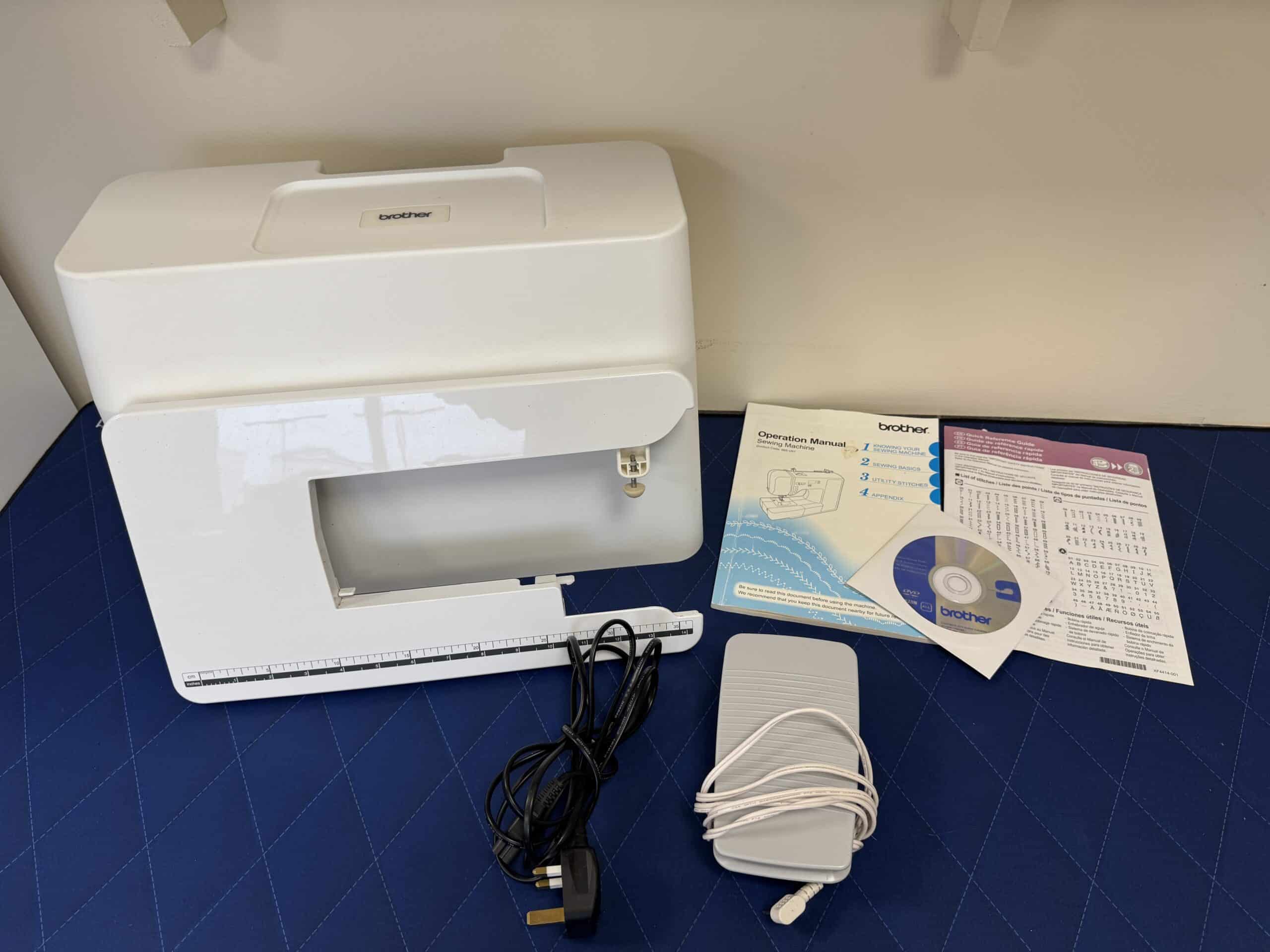 Comes with: Standard zig zag foot, Straight stitch foot, Buttonhole foot, Instruction manual, Extension table, Hard cover, Foot control, Power Lead